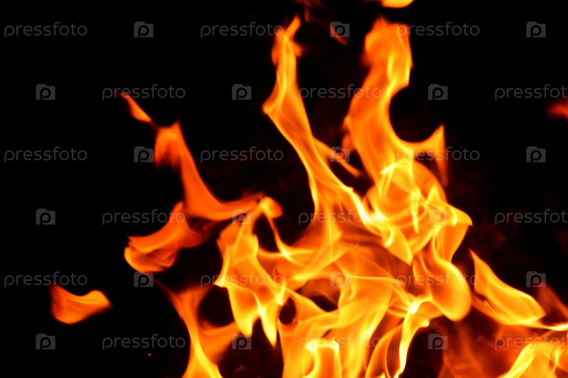 Пламя костра на черном фоне