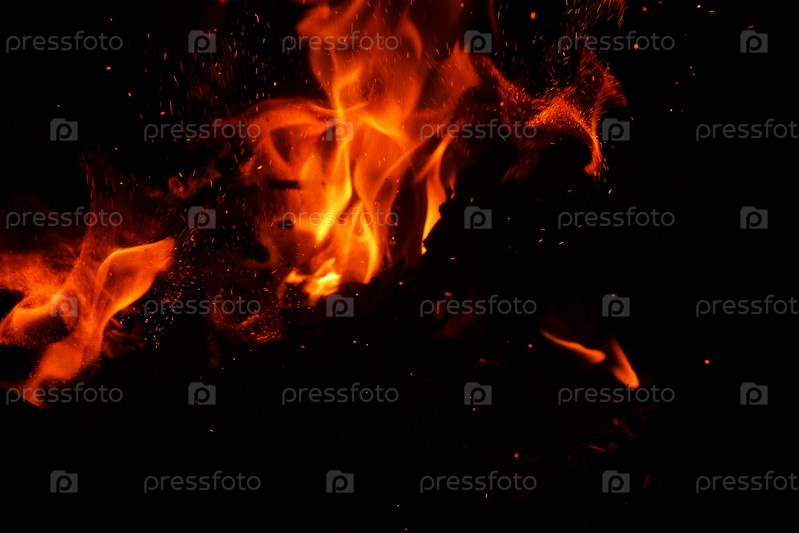 Пламя костра на черном фоне