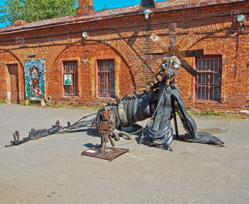 Выставка оригинальной скульптуры у музея истории Кронштадта. Дракон