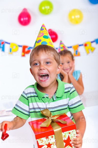 Мальчик с подарком на день рождения
