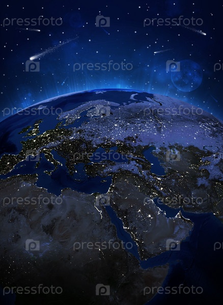 Поверхность планеты Земля ночью