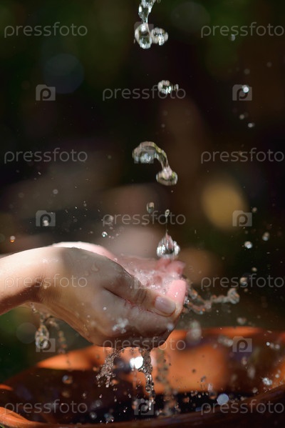 Брызги чистой воды на женских руках