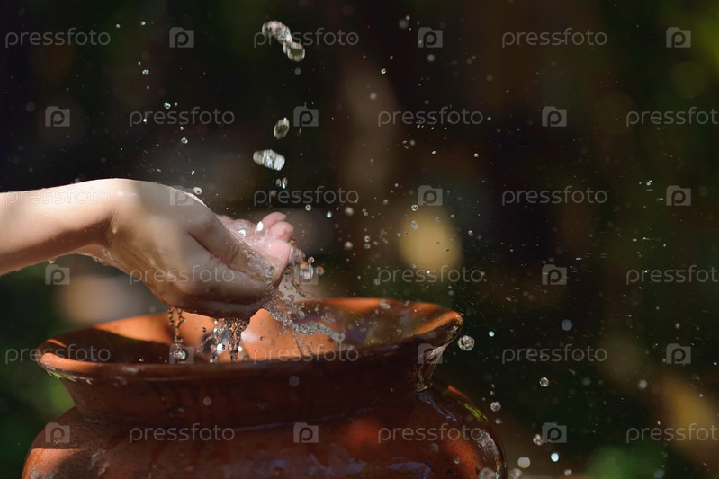 Брызги чистой воды на женских руках