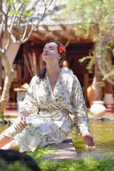 Женщина отдыхает в тропическом спа