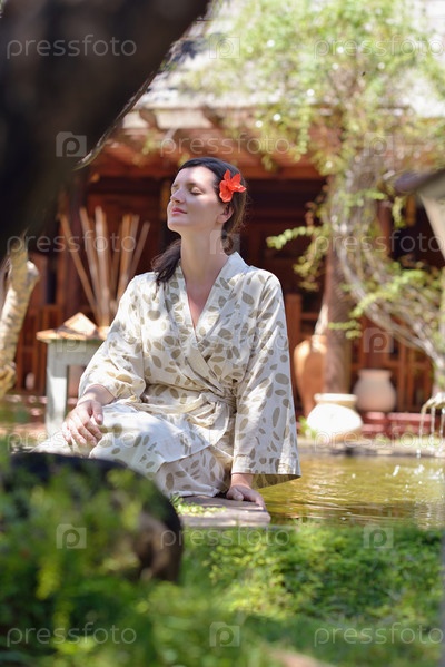 Женщина отдыхает в тропическом спа