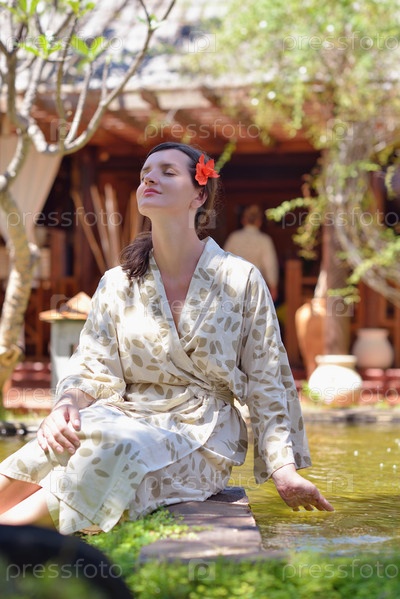 Женщина отдыхает в тропическом спа