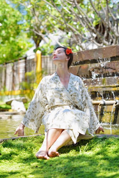 Женщина отдыхает в тропическом спа