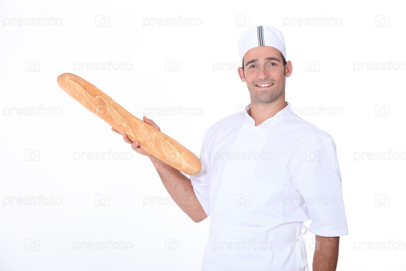 Пекарь со свежим багетом