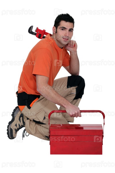 Рабочий с ящиком для инструментов