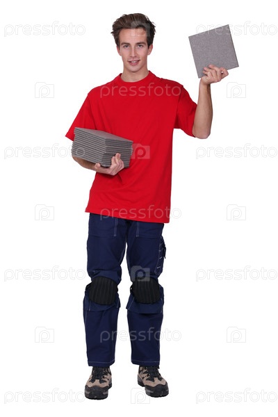 Рабочий с плиткой