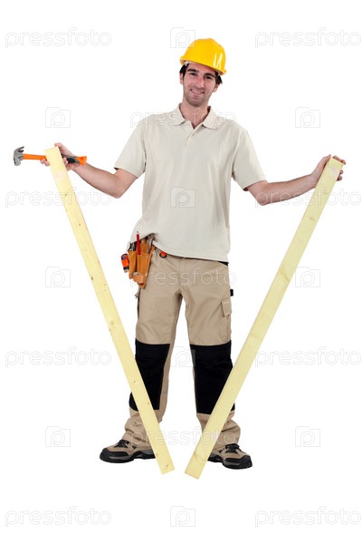 Рабочий держит две доски