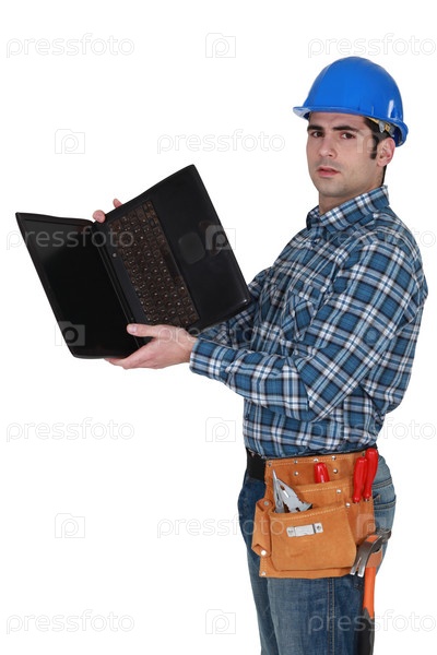 Каменщик с ноутбуком