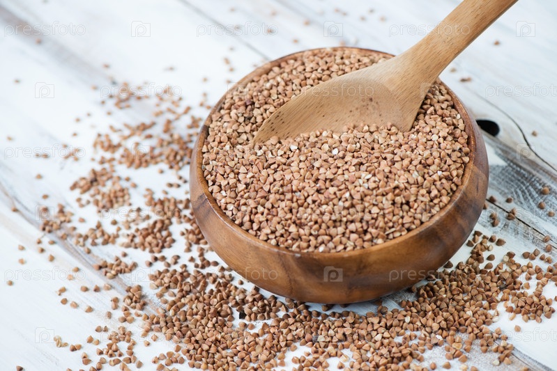 Деревянная чаша с сырой гречневой крупой