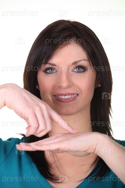Женщина указывает на свою руку