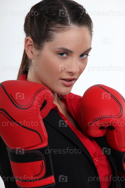 Привлекательная женщина в боксерских перчатках