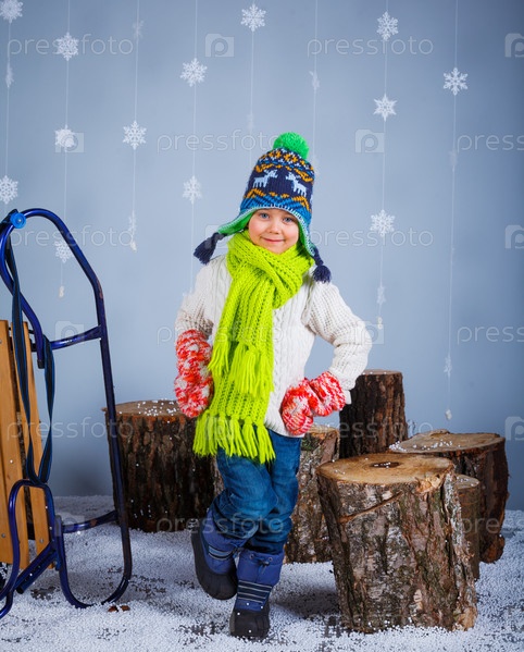 Смешной мальчик в зимней одежде