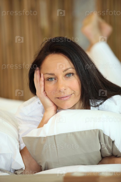 Женщина лежит на кровати