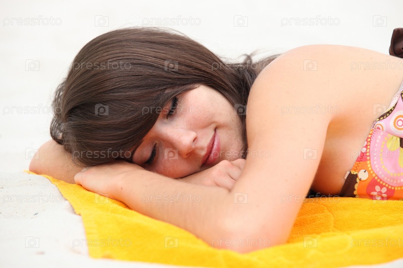 Загорающая брюнетка