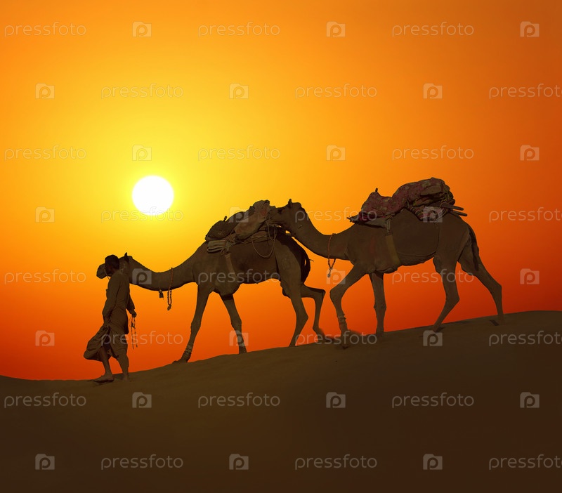 Силуэт верблюда на закате