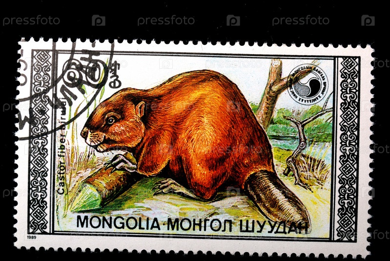 Почтовая марка Монголии с изображением речного бобра