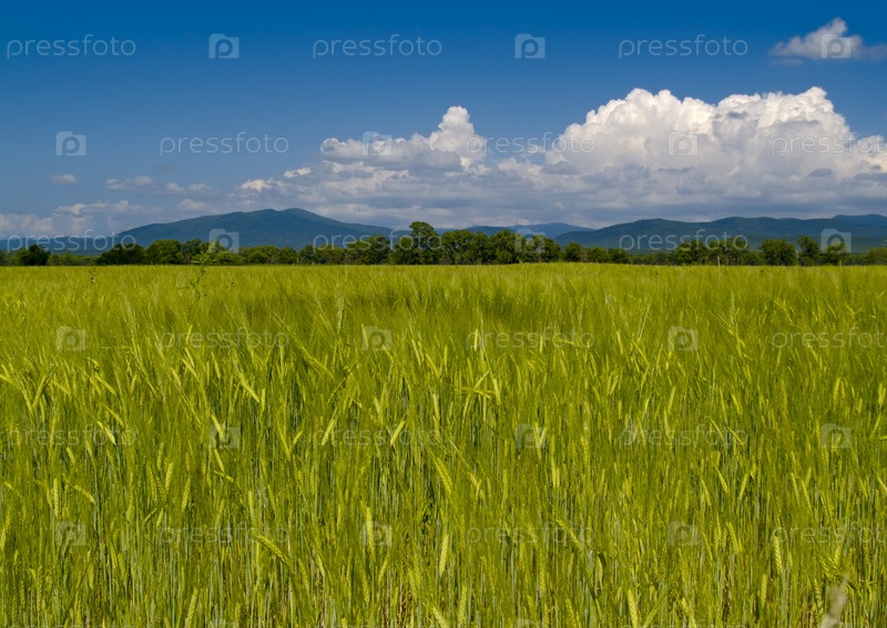 Пшеничное поле ясным днем