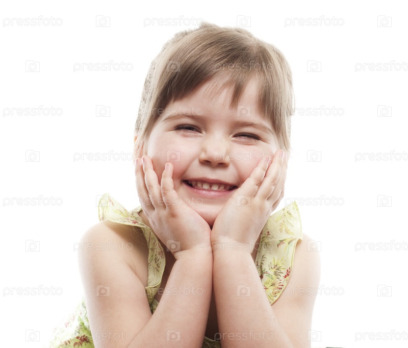 Портрет улыбающейся девочки на белом фоне