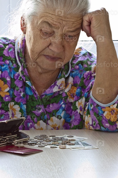 Пожилая женщина считает пенсию