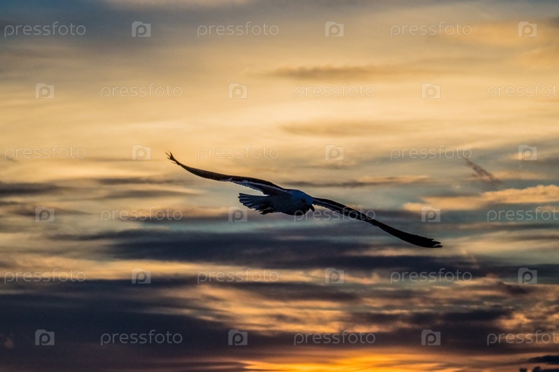 Чайка в вечернем небе Балтийского моря