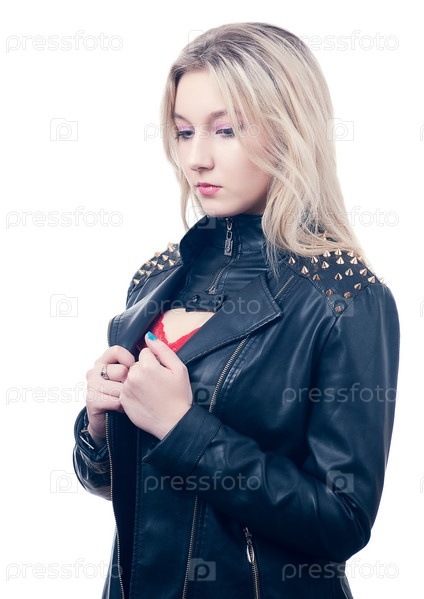 Печальная блондинка в кожаной куртке