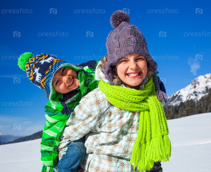 Дети играют зимой