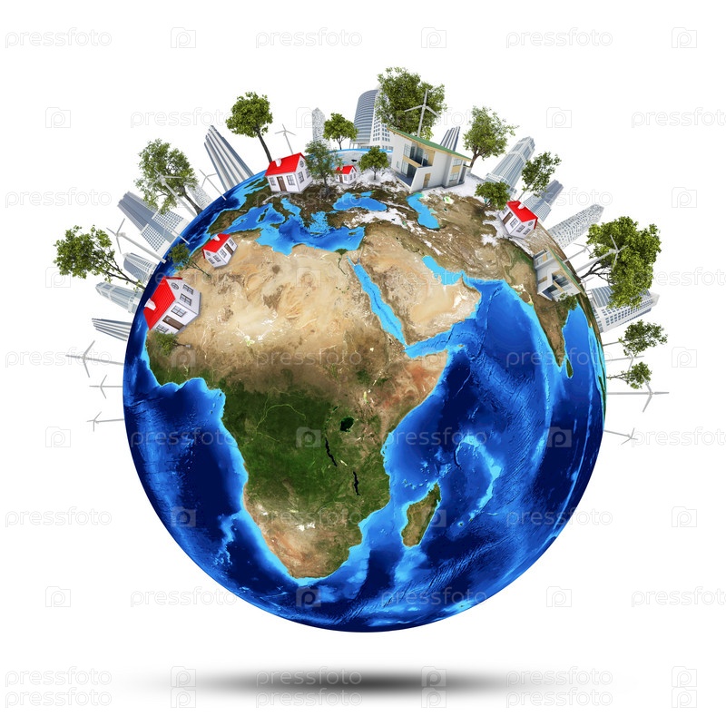 Планета Земля со зданиями на поверхности