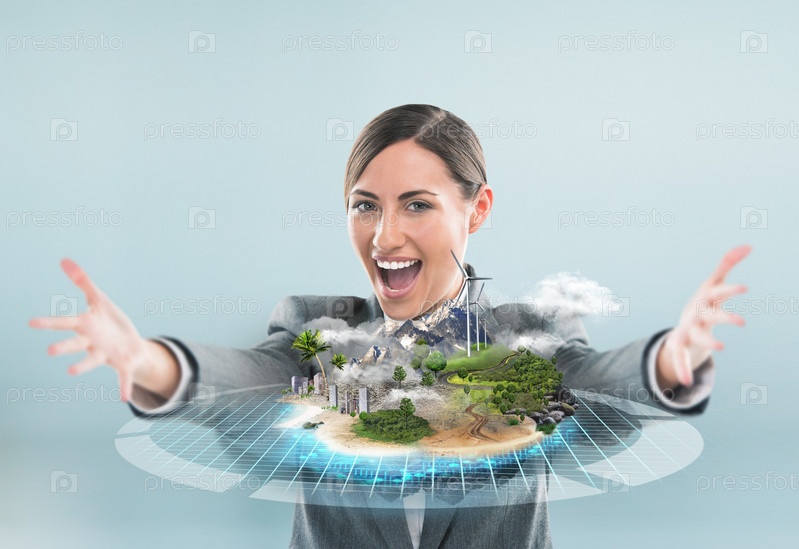 Бизнес-леди представляяет проект идеального города