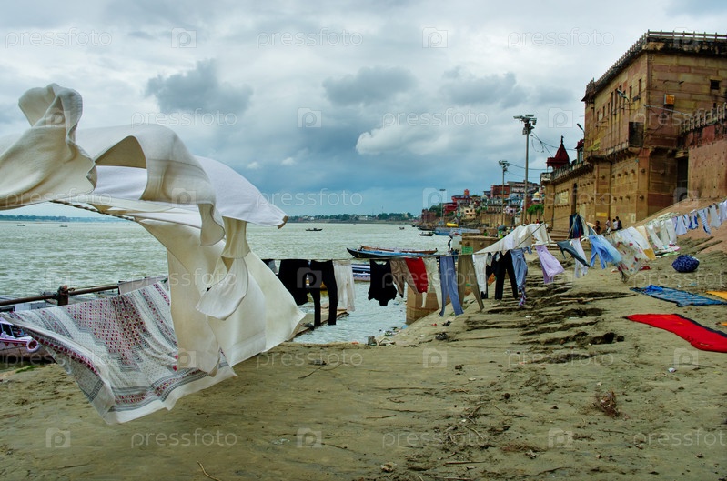 Стирка белья в реке Ганг в Варанаси, Индия