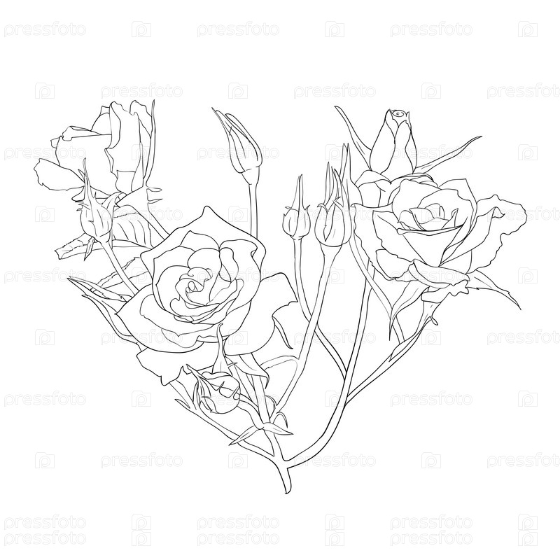 Нарисованные от руки розы, иллюстрация на белом фоне