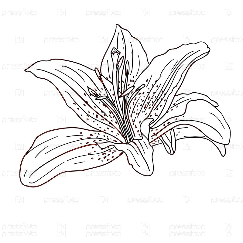 Нарисованный от руки бутон лилии, иллюстрация на белом фоне