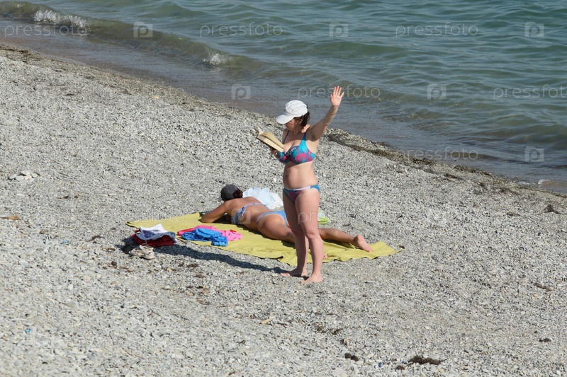Женщины загорают на пляже