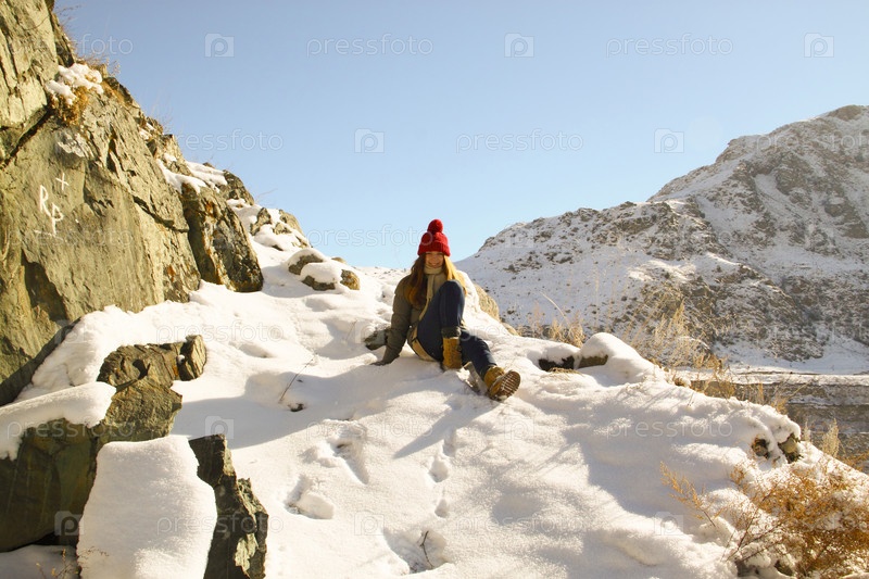 Девушка спускается с заснеженной горы