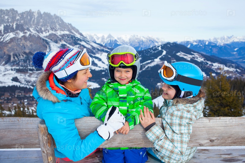 Семья на горнолыжном курорте
