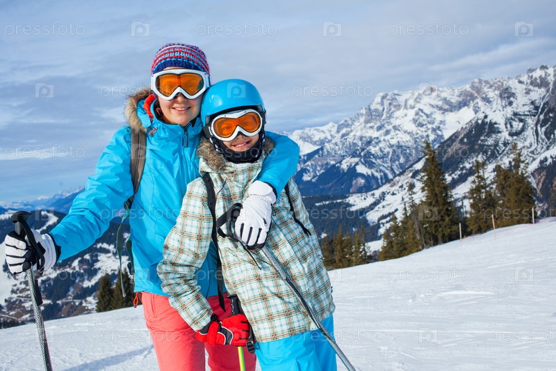 Семья на горнолыжном курорте