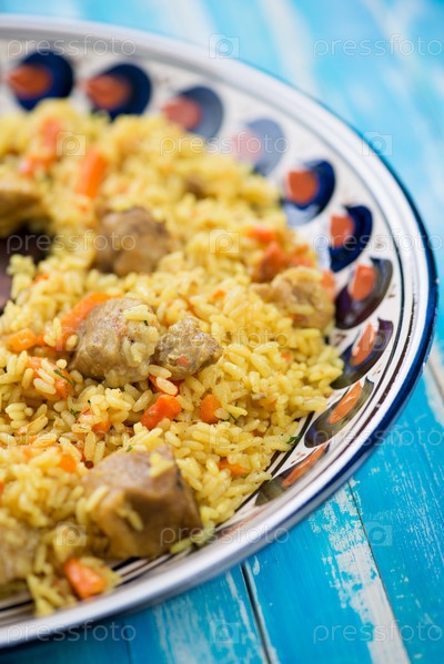 Традиционный узбекский плов в тарелке