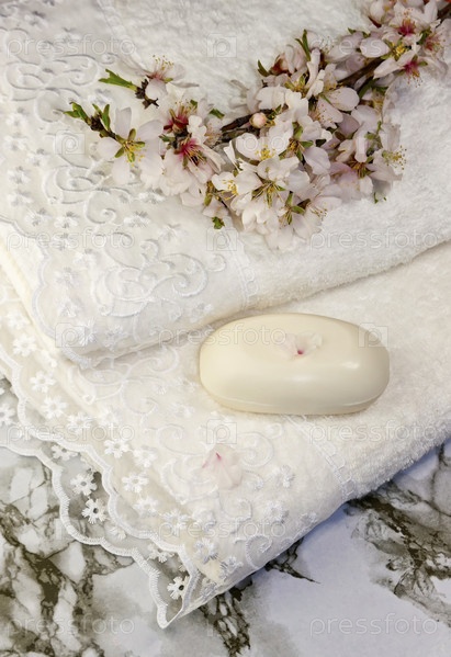 Белые полотенца и мыло (спа-натюрморт)