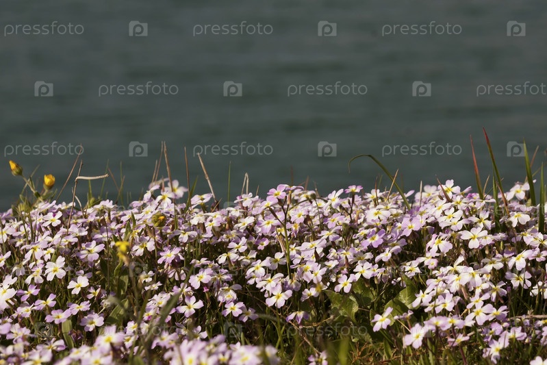 Фиолетовые цветы на фоне моря