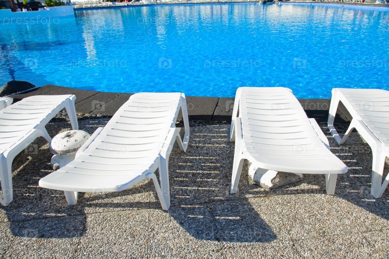 Бассейн, окруженный шезлонгами