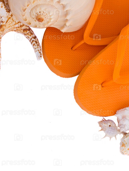 Оранжевые босоножки и ракушки
