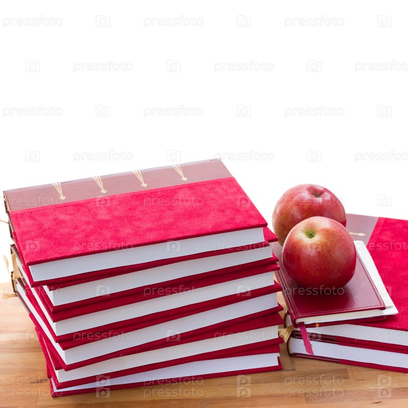 Стопка книг и яблоки