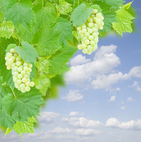 Белый виноград и листья в саду