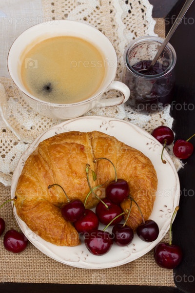 Завтрак со свежими круассанами и кофе