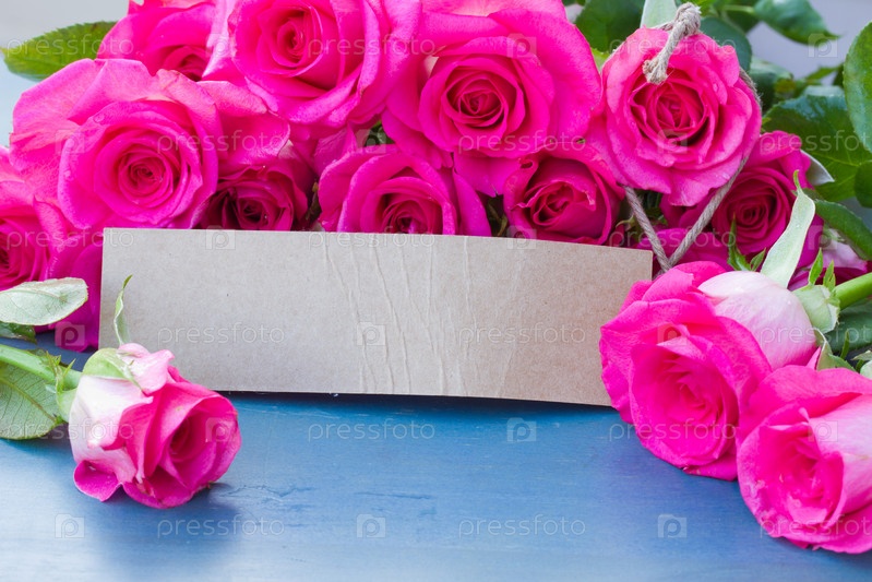 Свежие розы с карточкой