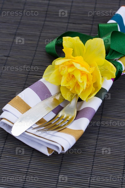Столовые приборы и нарцисс