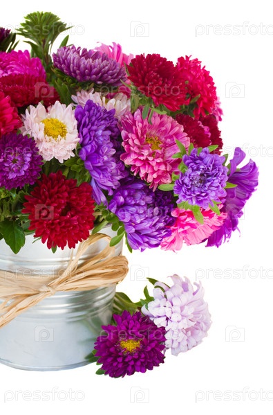 Букет астр в ведре